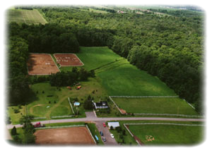 À l'extérieur, nous offrons 3 manèges : un chasseur, un sauteur et un parcours de poney, qui est éclairé pour les beaux soirs d'été.